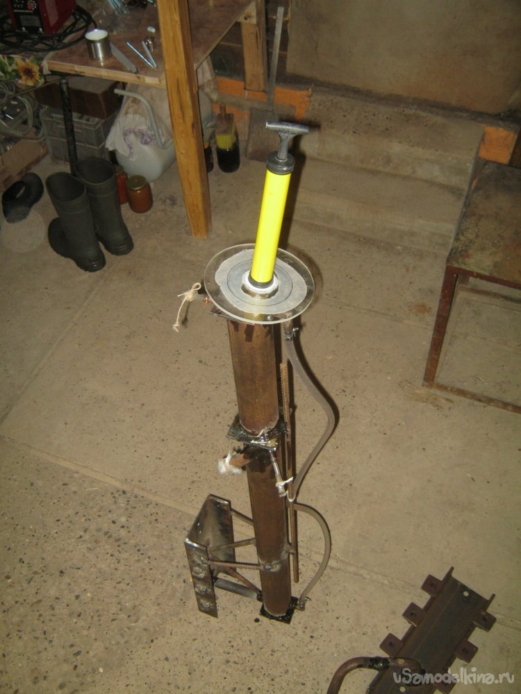 Собранные аппараты снабдил шлангами – отрезал куски, уточнил длину по месту и обрезал лишнее, натянул шланги на патрубки и зафиксировал червячными хомутами. Шланг-уровень прикрепил в нескольких местах нейлоновыми ремешками к специальной штанге. В крышку горловины, из толстой резины ручным лобзиком по дереву выпилил прокладку.
