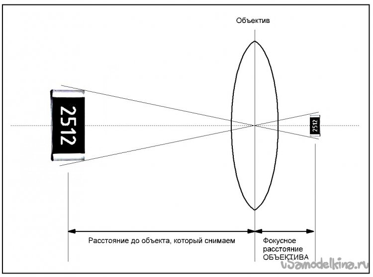 В некоторых обзорах и статьях на тему подобных электронных «увеличилок» авторы не совсем корректно рубят термином "фокусное расстояние" куда попало, обзывая так в том числе и расстояние до объекта, и расстояние до первой линзы. Я искренне не понимаю, зачем люди используют термины, значения которых они не до конца понимают, поэтому справедливости ради небольшое отступление. Фактическое фокусное расстояние в моем случае привязано как к объективу полноценного полнокадрового фотоаппарата, и оно означает расстояние от оптического центра объектива до полноразмерного сенсора (кадра фотопленки), когда линза сфокусирована на бесконечность.