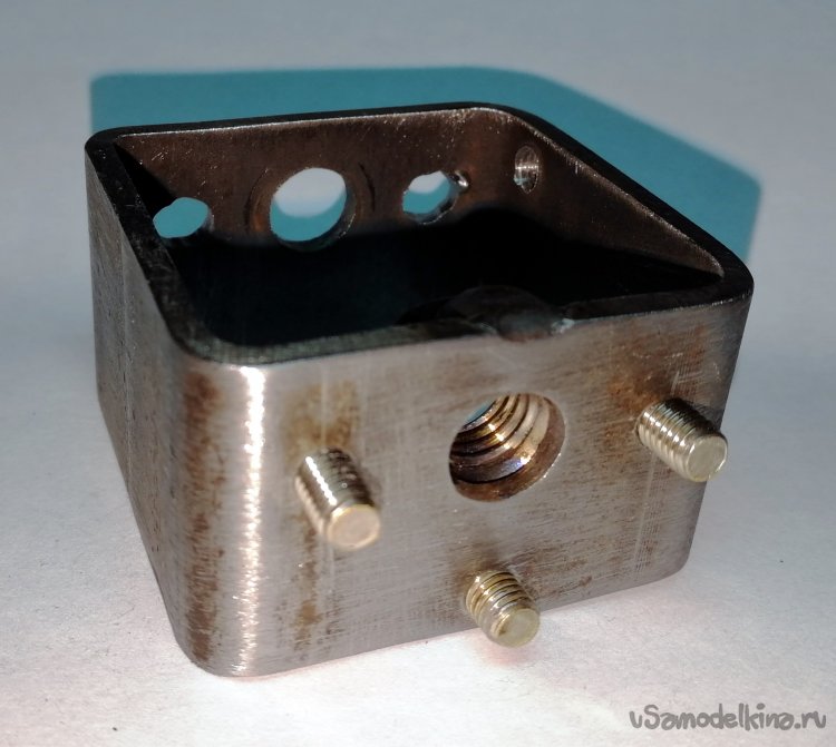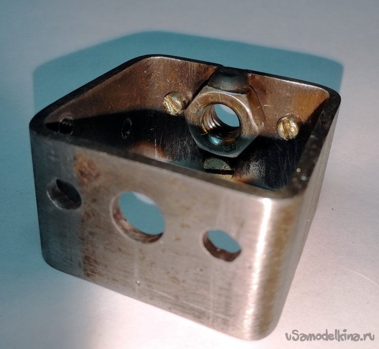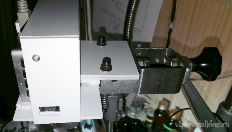 Нижнее гнездо в кронштейне фотоувеличителя предназначено для крепления объектива под углом 90° в случае использования как проектора слайдов, поэтому это гнездо я тоже использовал под дополнительный штырь, для «надежности».