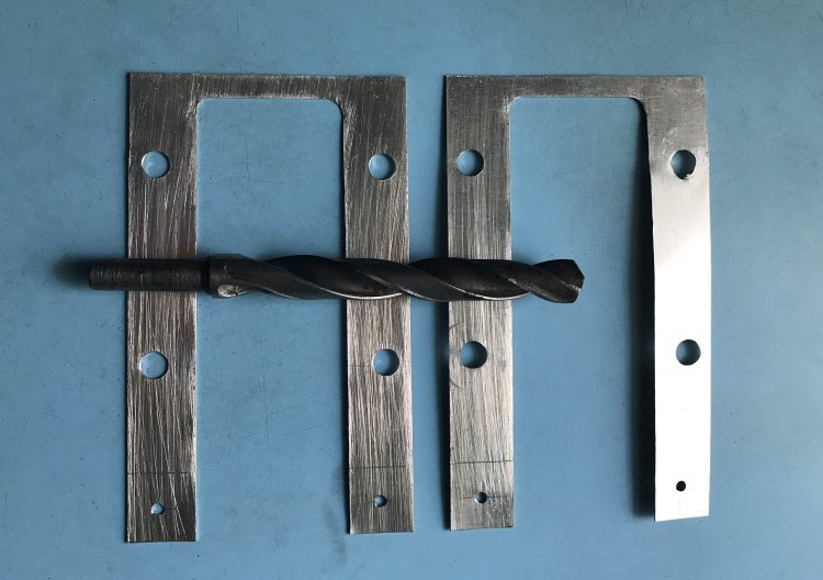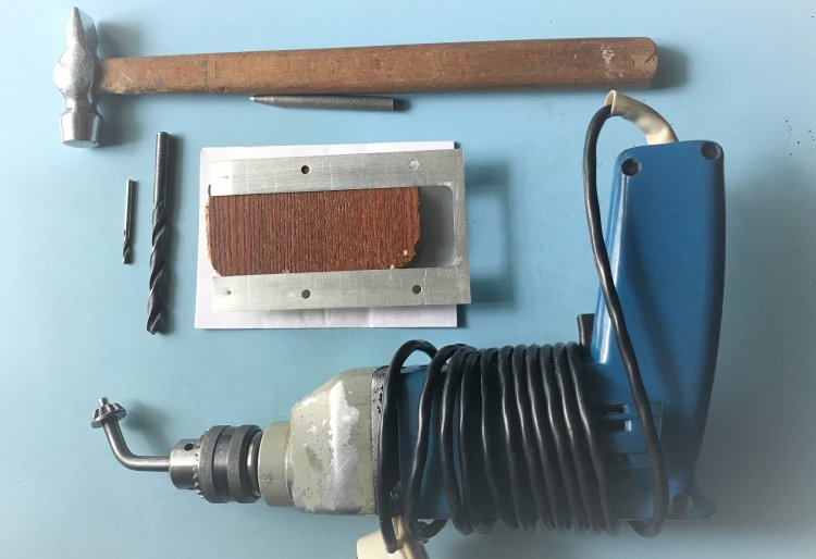 Вырезанные П-образные заготовки будут иметь по 4 отверстия диаметром 8 мм – это диаметр выбранных карандашей, и по два крепёжных отверстия диаметром 3,2 мм – под латунные винты М3х10. Автору оставалось только рассверлить 4 отверстия до диаметра 8 мм, а под отверстия 3,2 мм делалось кернение, сверление и лёгкая зенковка. Всё требуемое оборудование см на рисунке 5):