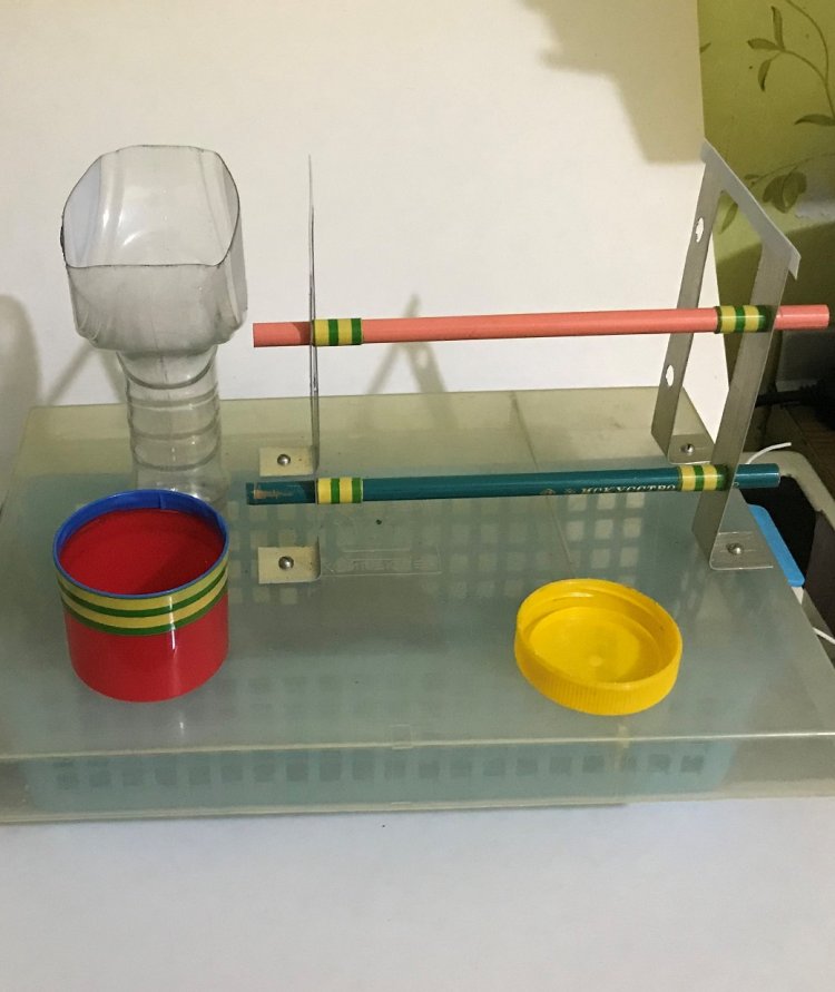 Верх П-образных стоек турника заклеен 1-2 слоями белой изоленты, чтобы птицы не поранили лапки. Жёрдочки - карандаши в П-образные стойки – держатели (на усмотрение синиц) можно установить по разному. Смотрите несколько вариантов на рисунках 13 … 16.