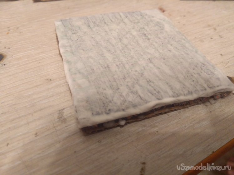 Немного ждём, чтобы клей подсох и приляпываем поверх оставшийся кусок картона, предварительно (а как же без этого!) пропитав в клею. И желательно снова под пресс, чтобы плотность была повыше, следовательно и прочность примет такие же показатели.