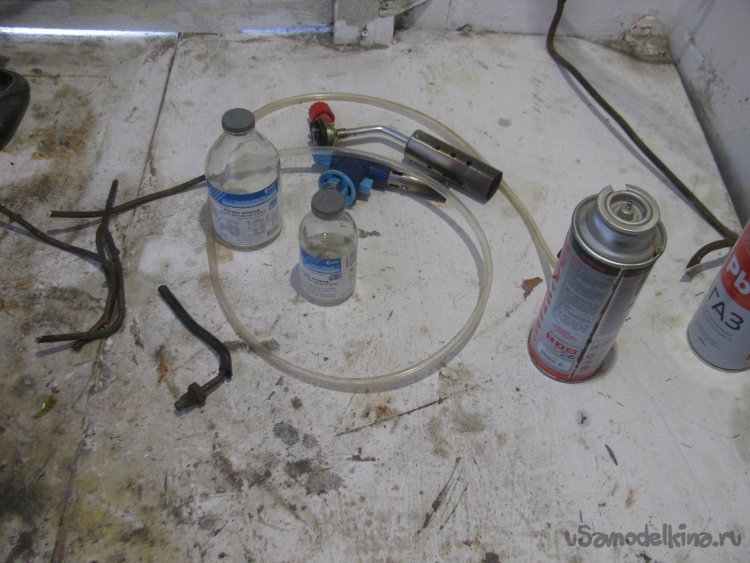 Бензин у нас будет нагреваться и кипеть, а источником тепла служит кусок спирали от плитки, нагревается она от блока питания на 14В с небольшим потреблением тока.