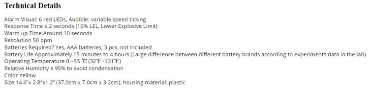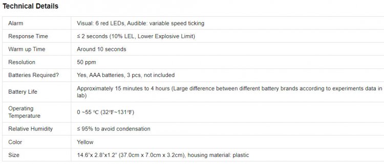 Дальность обнаружения: приблизительно 50 до 10000 ppm (данные основаны на метане), мгновенный ответ после того, как соприкасается с точкой утечки.