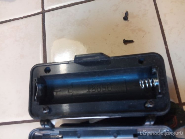 2. Берём старый неисправный фонарик-донор на элементе 18650. Из него нам понадобится только батарейный отсек, смело разбираем его и выкусываем. Крышка является частью фонарика, поэтому её тоже выбрасываем. Потом что-нибудь придумаем.