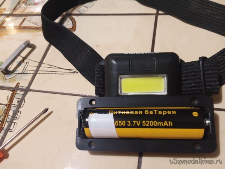 2. Неисправный фонарик-донор, работающий на элементах 18650