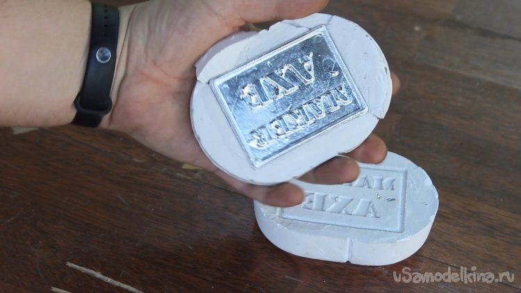 Гис я замешал в пластиковом боксе, так как легче будет отмывать его потом. После работы остатки смеси не в ком случае нельзя выкидывать в унитаз, необходимо дождаться полного высыхания и вынести с мусором. После того как я отлил форму, я просверлил по углам формы отверстия сверлом на 2мм, для выхода воздуха при заливке метала, это необходимо сделать для избежание образования пустот. В посередине я сделал отверстие в виде воронки для удобства заливания металла.