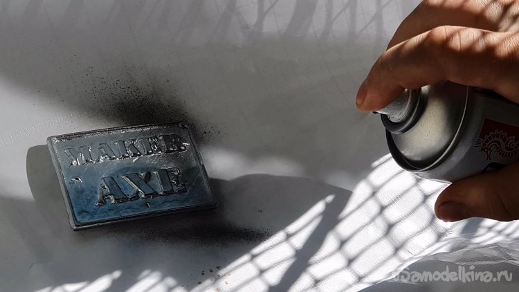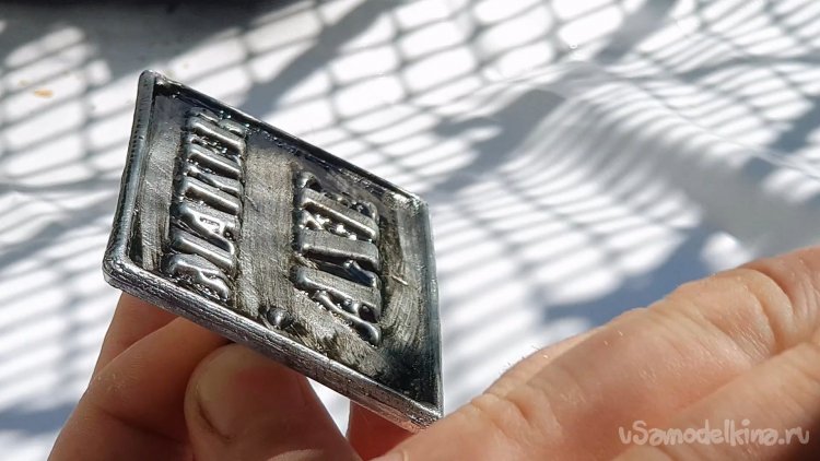 И так, отливку я выполнил дома на подоконнике, вышло достаточно прилично результатом я вполне доволен. Теперь необходимо удалить всё лишне. Для это я использовал кусачки, ножовку по металлу и обработал неровности бормашинкой, можно использовать простой напильник и наждачную бумагу . Так же бормашинкой я придал форму язычку на пряжке, просверлил отверстия под петлю, петлю я изготовил из стальной проволоки и всё почти готово. Осталось нанести тонер(это на любителя), тонер нужен что бы подчеркнуть детали текст и придать вид старины. В качестве тонера прошлый раз я использовал чернила от лазерного принтера, в этот раз я взял баллончик с глянцевой черной краской. Наносим плотно слой краски с лицевой стороны изделия, и очень быстро начинаем вытирать, так как краски с баллончиков быстро сохнут и можно не успеть вытереть. Вытереть необходимо выпуклые детали, а углубления при этом остаются уже с краской. И вот спустя час пряжка готова ) для надежности оставил ещё на пару часов досохнуть краске и можно одевать на ремень.