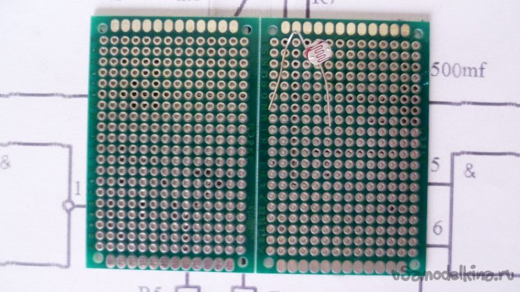 На фото две платки- ломаем как шоколадку. На мой взгляд так быстрее и удобнее. А если кому то надо –можно сделать и на печатной плате, благо деталей обвязки микросхемы не много.