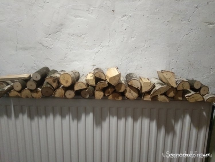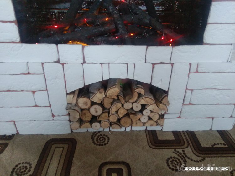 Напилил несколько березовых веток, разрубив некоторые на несколько частей, высушил их и с помощью герметика уложил их в портал для дров.