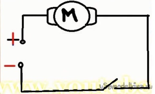 Мини дрель почти готов. Теперь следует припаять провода питания, а также моторчика. Правильная схема пайки показана на следующей схеме.