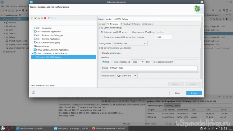Подключение STM32, кодогенератор и отладка