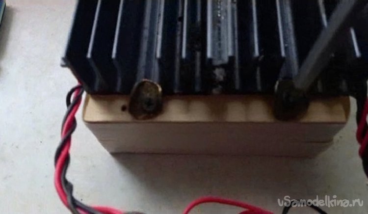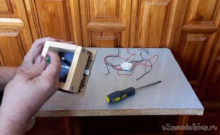 скрутил рамку из сосновой рейки 15х40, из расчета чтобы элементы поместились внутри. Пропилил желобки под провода и шурупами 55х4 зафиксировал радиаторы.