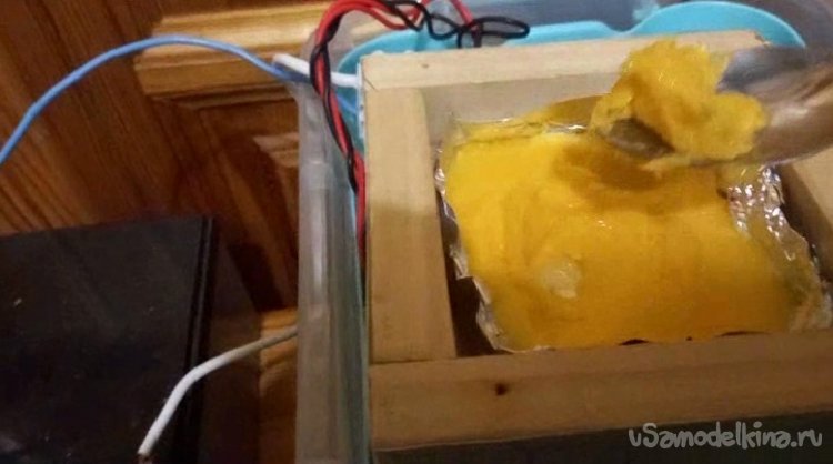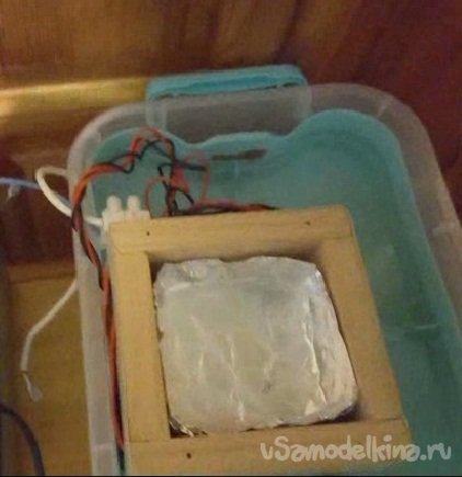 Для теплоизоляции, крышечку камеры морозилки сделал, как и коробку, из дерева.