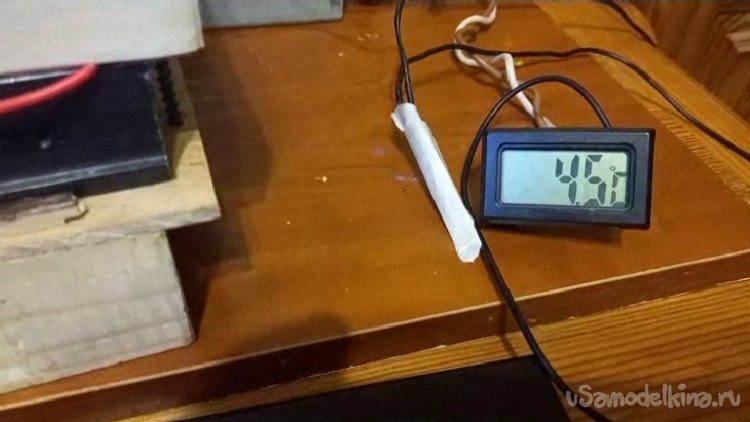 Питание подключил через зарядку от ноутбука 3 А и буферный аккумулятор 12 А, 12 В. Тест показал, что компьютерный вентилятор не справился со своей задачей, даже когда его питание поднял до 24 В. Тепло отвести не удалось, температура, опустившись до 5.5°C, а потом начала подыматься. Принудительный обдув не подошел.