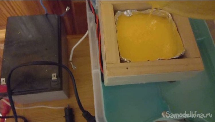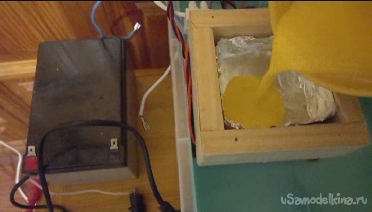 Так и поступил, насыпал часть смеси, залил молоком, взбил венчиком и вылил в форму из фольги, которая размещена в морозильной камере. Включил водяной насос и морозилку.