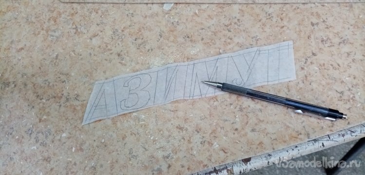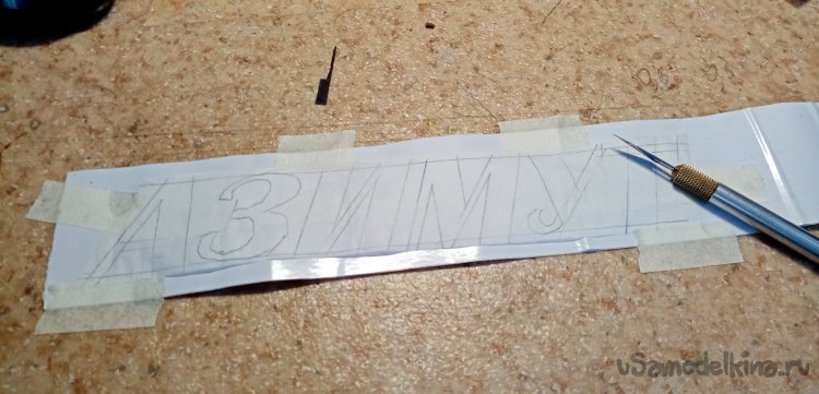 На экран вывожу в нужном масштабе название, подбираю красивый шрифт. Приготовил кальку для букв и эмблемы.