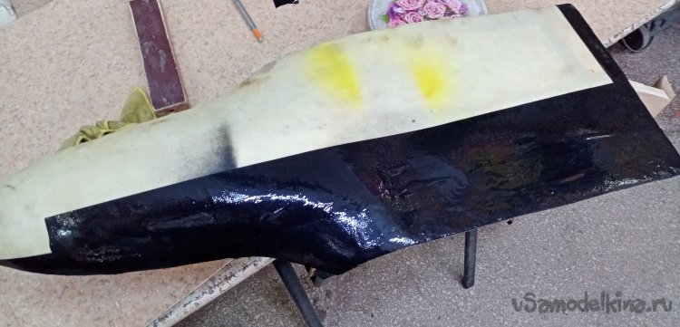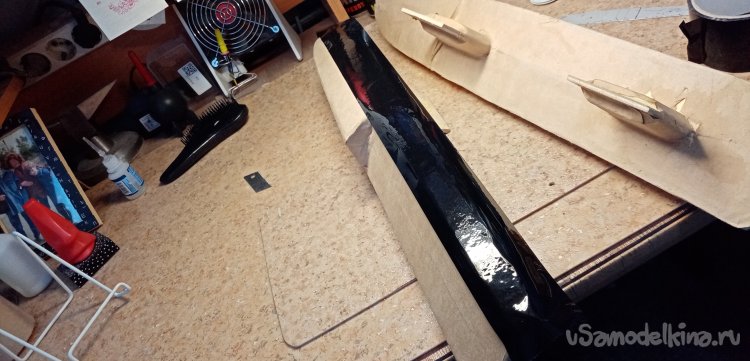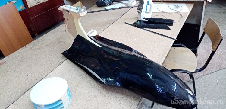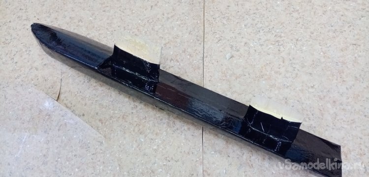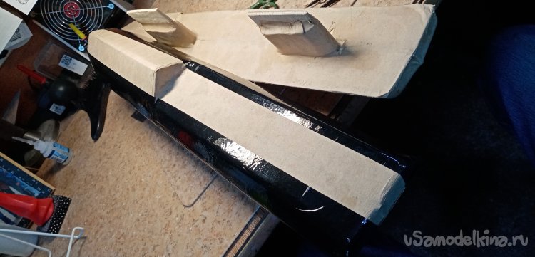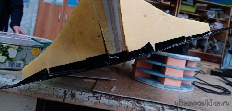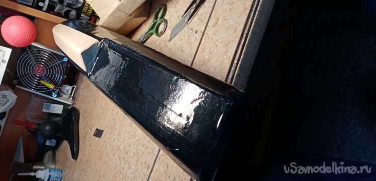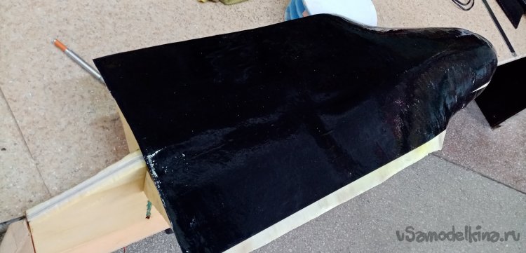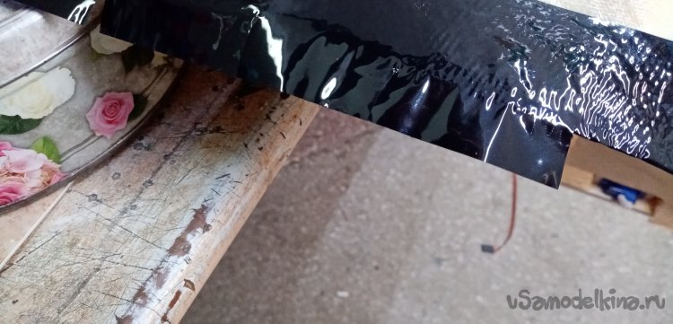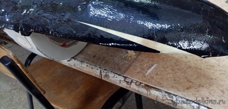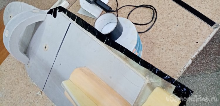 Корпус и крылья оклеены и проглажены утюгом, скотч приварен.