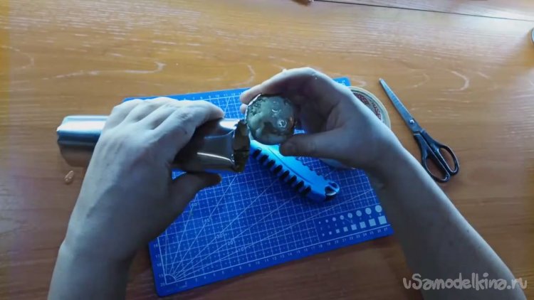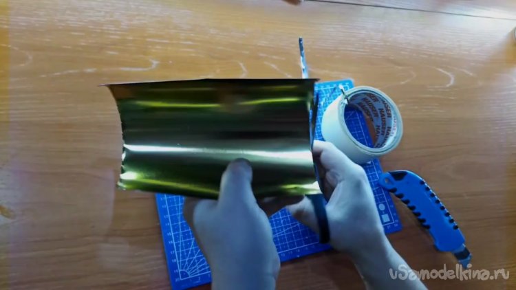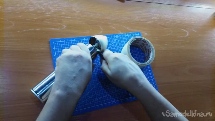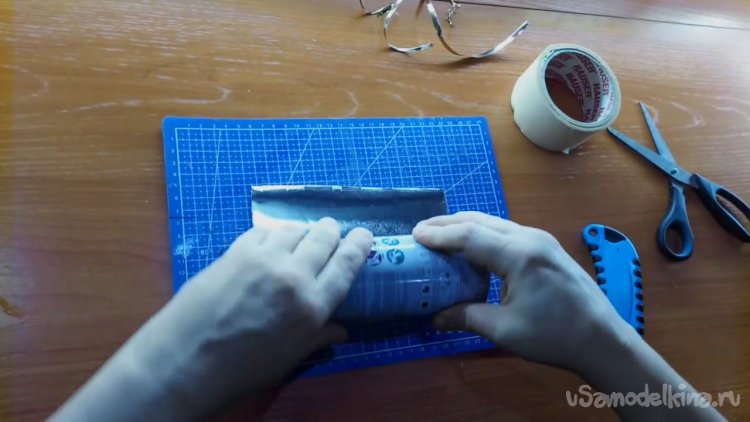 Оборачиваем баллон нашей жестью в противоположную изгибу сторону.