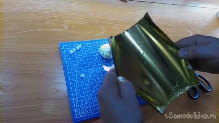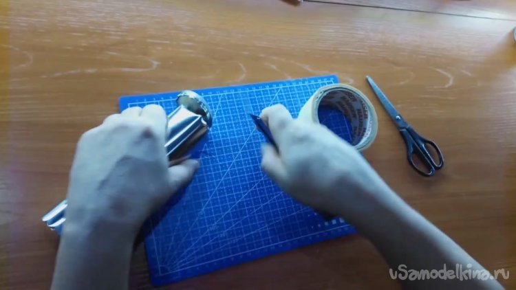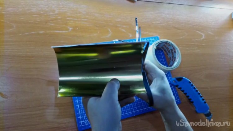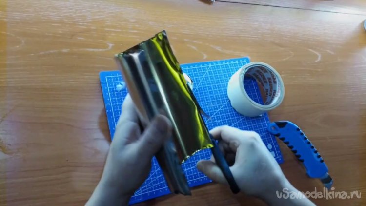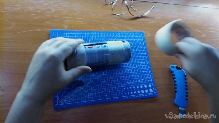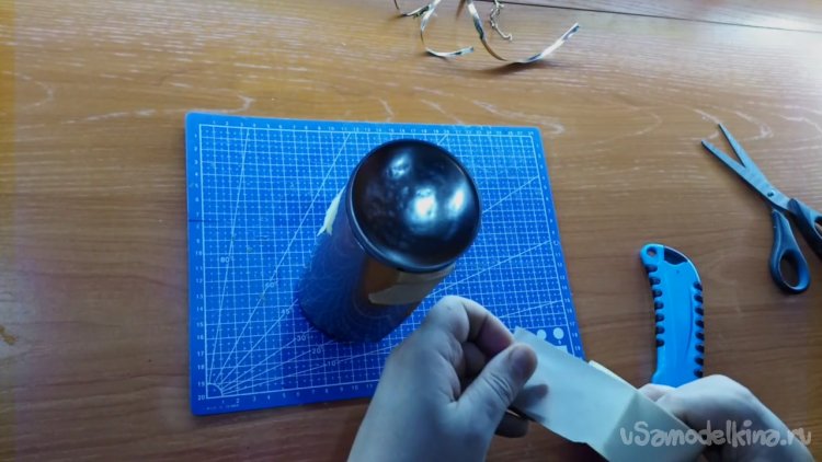 Следующим действием берём ножницы и разрезаем тубу баллона вдоль.