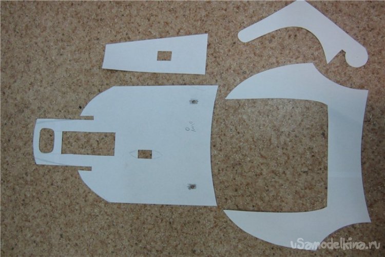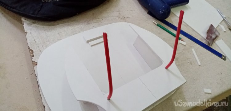 Основные детали вырезал из своего любимого рекламного пластика канцелярским ножом.