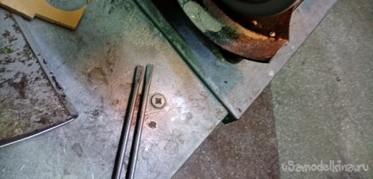 Расплющенные края обрабатываю на эклектическом точиле и придаю радиусы, затем накернив место отверстия начинаю поиски сверла подходящего диаметра.