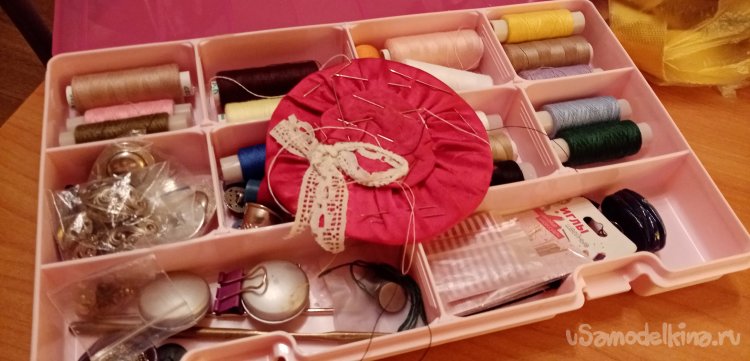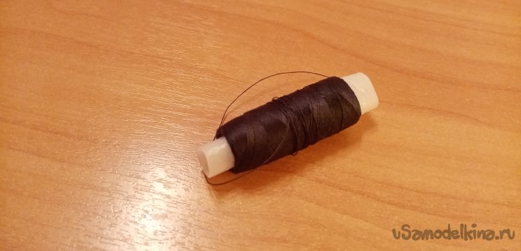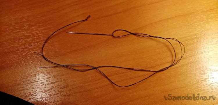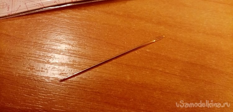 Из несессера подбираю суровую иголочку, для настоящих моделистов. Правда нитки оказались через чур тонкие. Пришлось шить ими в несколько сложений.