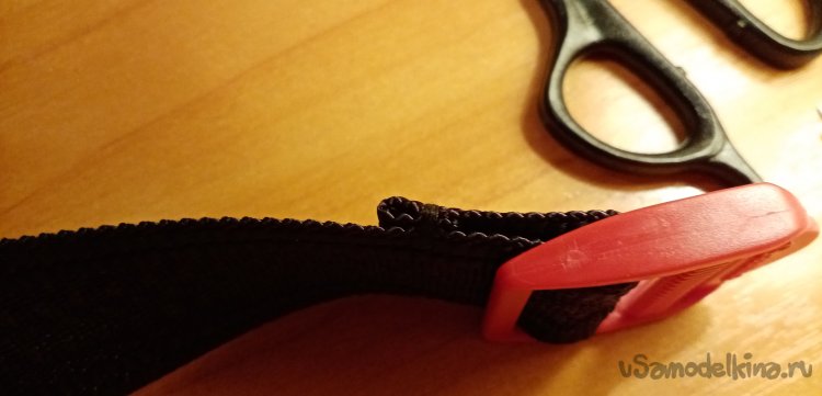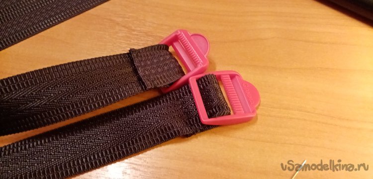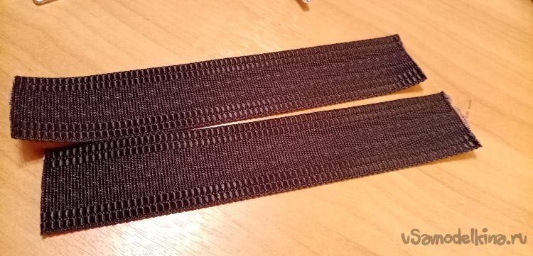 На эти кусочки одеваю крепления с защелками и сложив в двое сшиваю петлей.