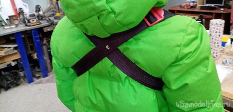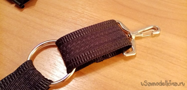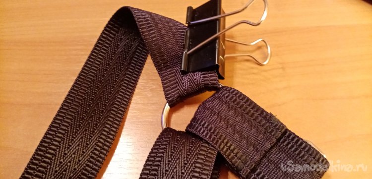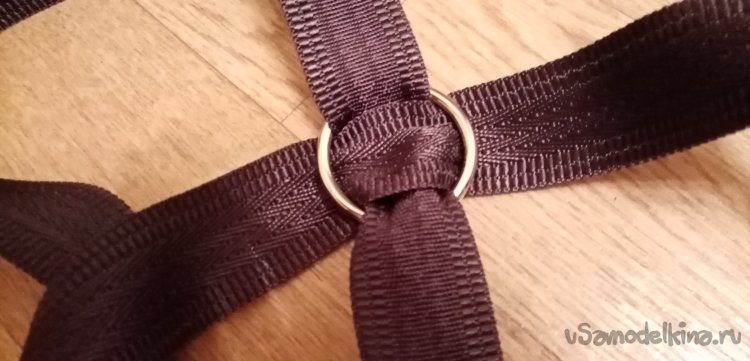 Затем соединяю ремни накрест при помощи кольца, правда, потом его пришлось демонтировать. Неудобно получилось, соединение ерзает.