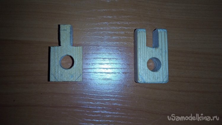 Далее сначала просверлил отверстия под трубку, по которой они будут ходить туда-сюда. Сверлил перьевым сверлом на двенадцать и только потом выпилил.