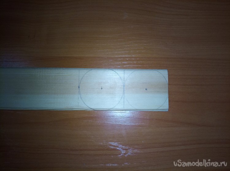 Для этого нам понадобится обрезок деревянного дверного обналичника и чертим на нем два круга.
