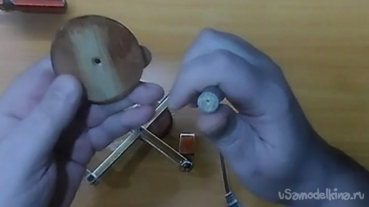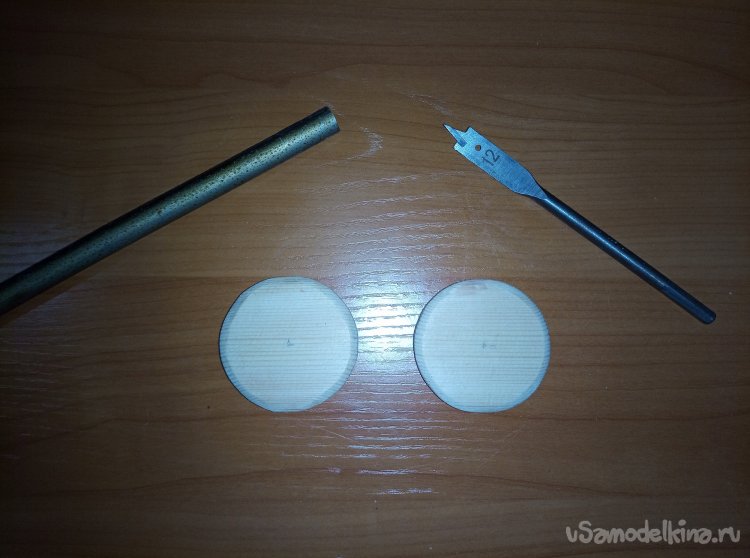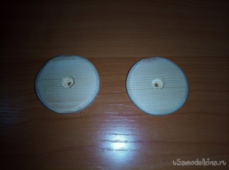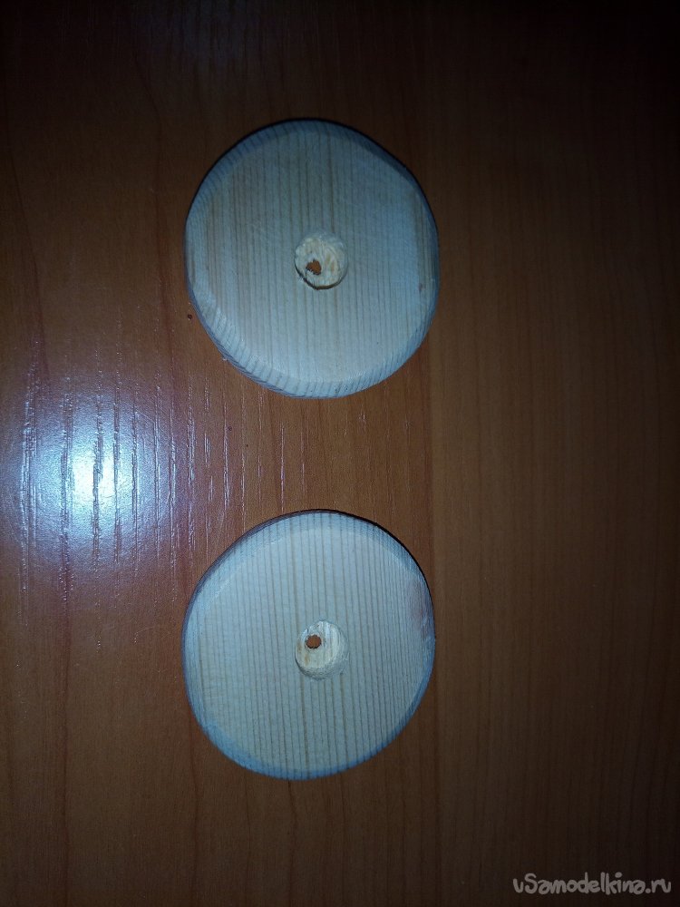Высверливаем углубление в наших круглых деталях, только не насквозь. Примерно так как на фото.