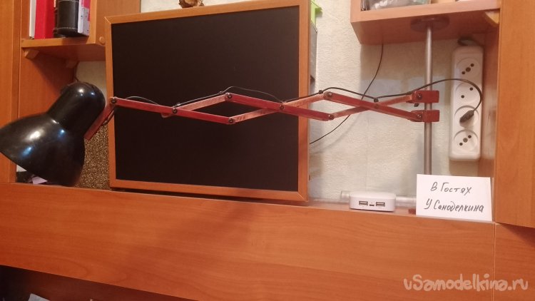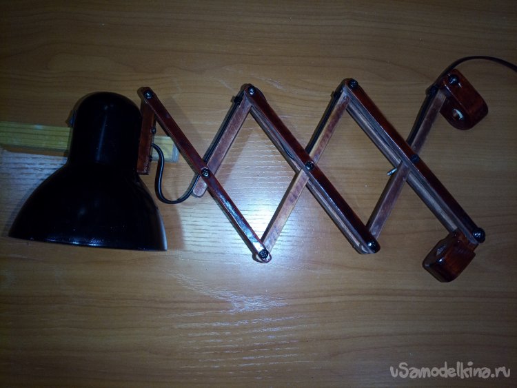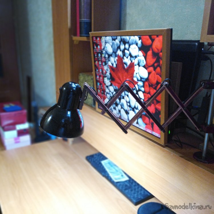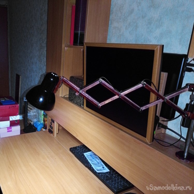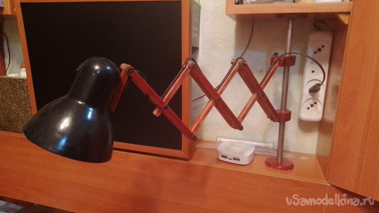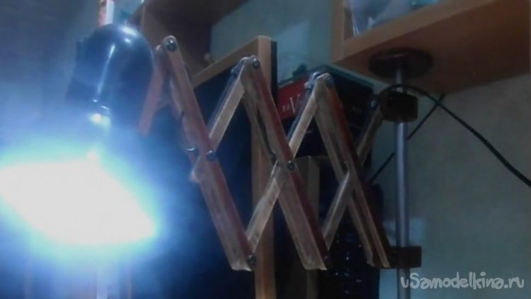 Лампа очень удобна в обращении, мне всё нравится, но если честно я бы добавил ещё пару секций, иногда не хватает длины механизма, но думаю такой материал, как штапик не выдержит такой нагрузки. Поэтому дальше нет смысла экспериментировать.
