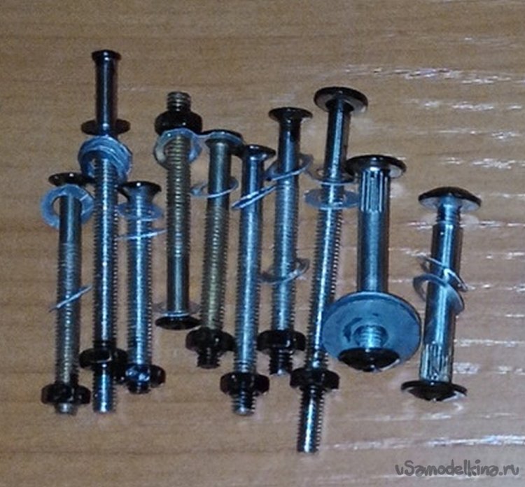 Начнём с головы. Соединяем звенья винтами с гайками и обязательно подкладываем шайбы.
