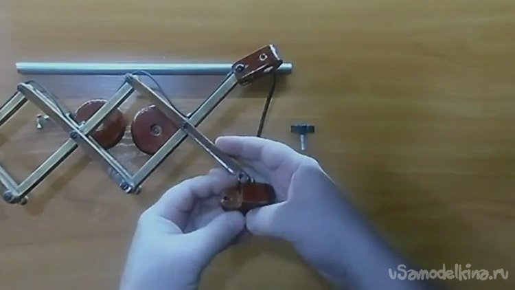 А далее всё должно пойти как по маслу, главное не забывать подкладывать шайбы. Задача не очень сложная,, думаю любой справится. И так звено за звеном, винт за винтом с шайбами и гайками, собираем ножничный механизм.
