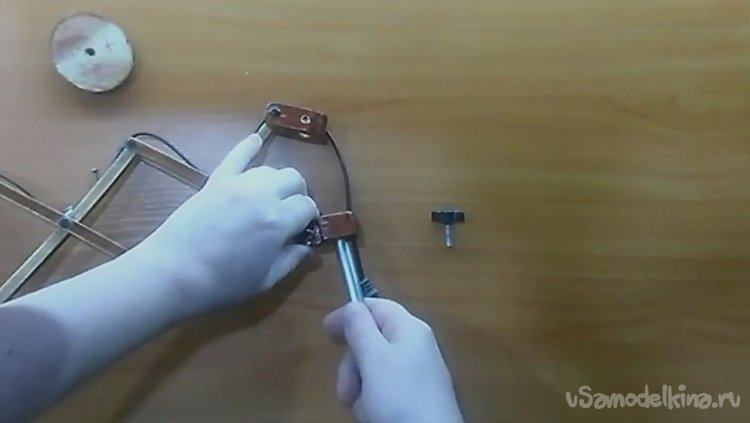 Ранее, процесс не попал на камеру, но я сделал в верхнем кронштейне отверстие с резьбой под стопорный болт-барашек. Устанавливаем болт-барашек на своё законное место.