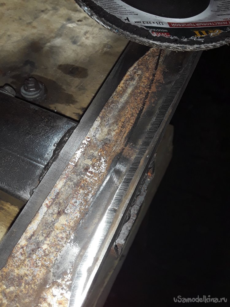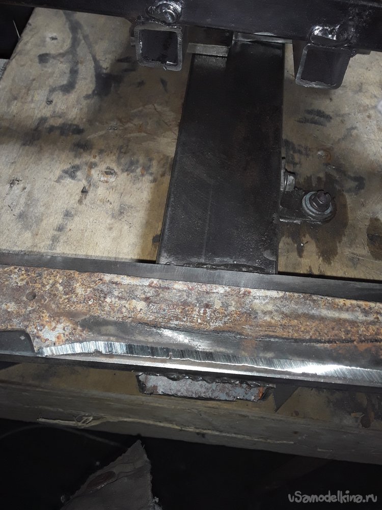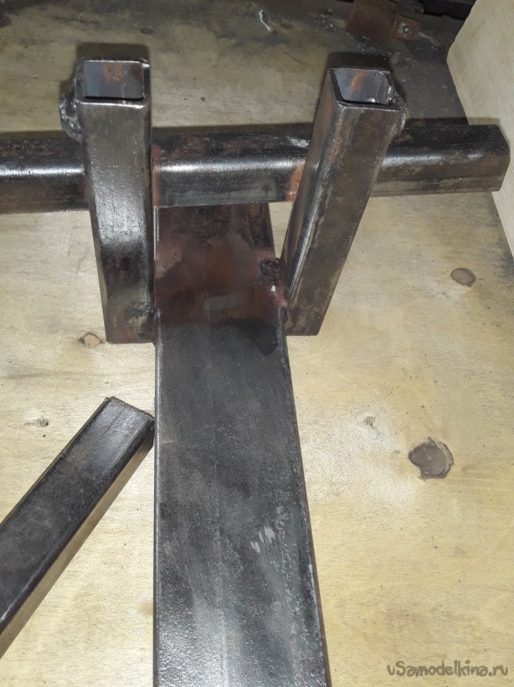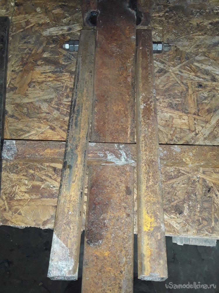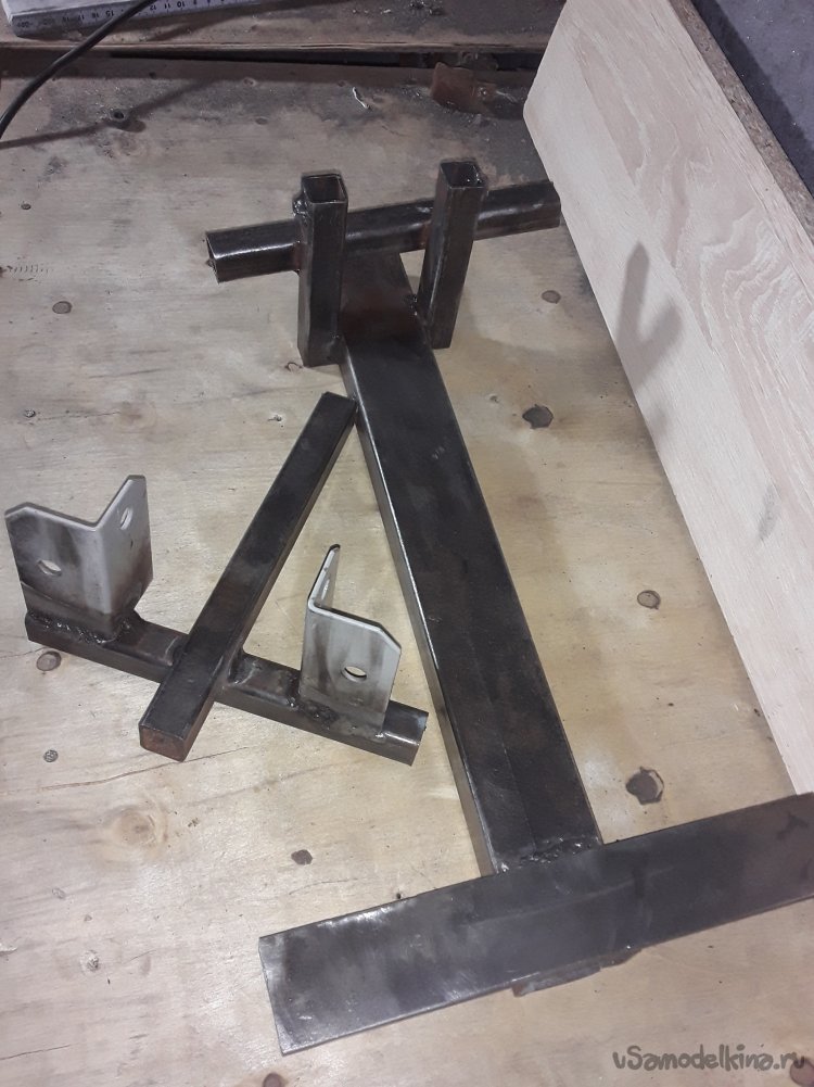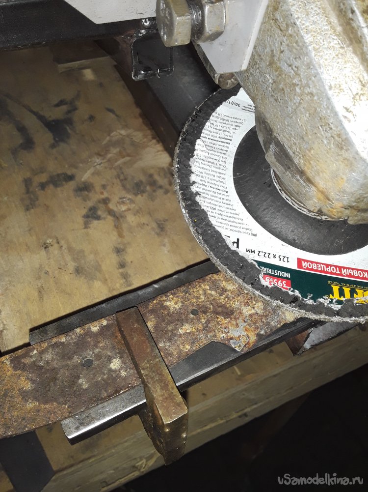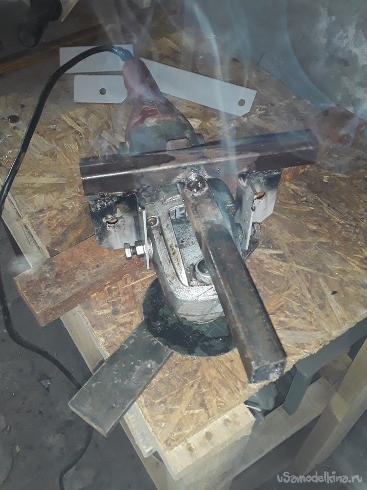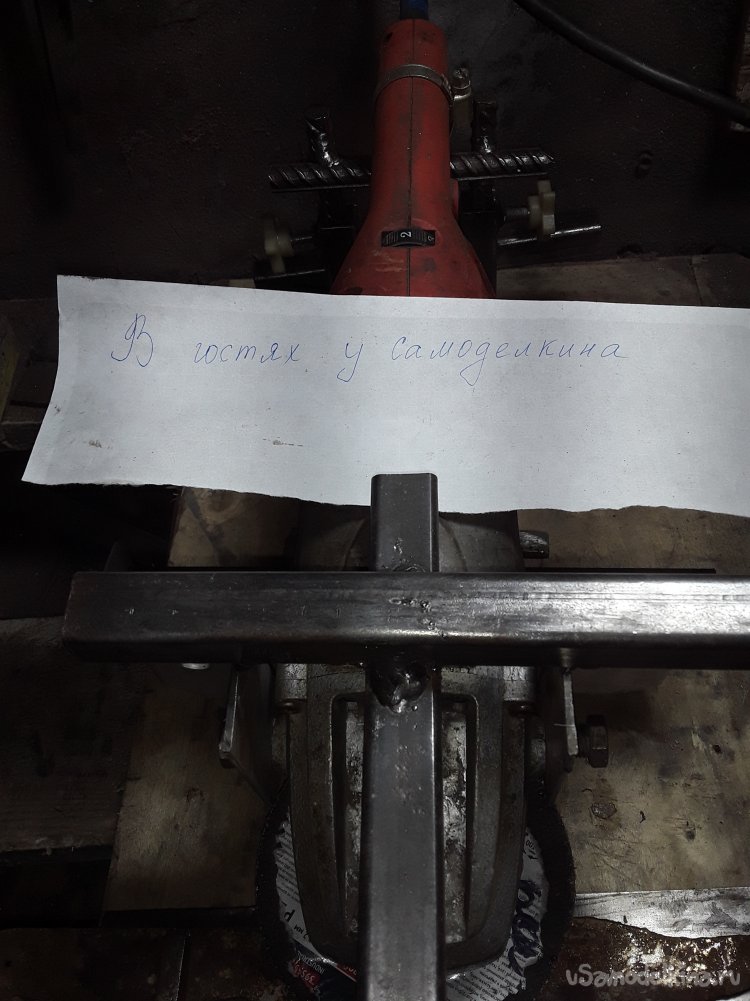 Здравствуйте совсем недавно я переделал свой гриндер под 600 ленту ее найти было не проблема на днях поехал в город на закуп расходников и нужной ленты я не нашел. Приехал домой, заказал с России ждать до 8 дней, а время поджимает нужно как то решать проблему. Когда я только начинал свое хобби я делал приспособление для шлифовки и выведения спусков потом собрал шлиф станок и приспособление отдал другу. Немного подумал и решил собрать такую же, но немного по другому. Тем более это вполне рабочая штука да и мне она нужна временно пока лента идет. Размеров никаких нет все походу работы. Нашел время и пошел в кузню.