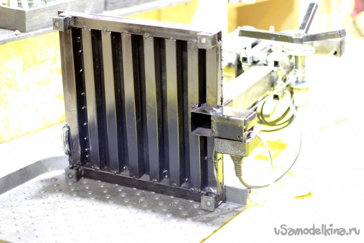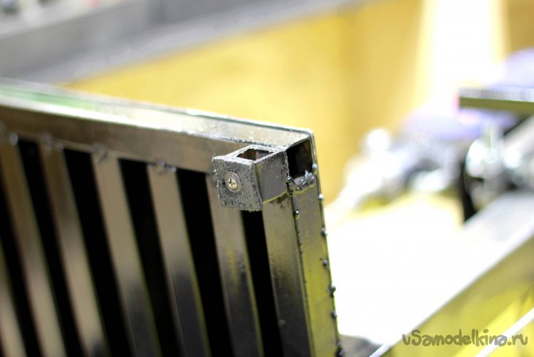Совет: Не делайте держатель полностью единым сварным элементом. Это требует идеального положения стойки по вертикали и приваренных к держателю элементов под прямым углом. Я лично не смог приварить его четко под 90 градусов. Было три попытки и я бросил эту идею. Поэтому я сделал платформу из листа 4мм, которую можно отрегулировать путем подкладывания шайбочек под пластину.