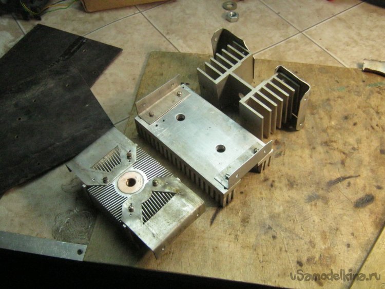 Предварительно скрепил стенки выпрямителя (Фото 7). Разметил места остальных радиаторов – из куска нетолстого алюминия (Фото 8) вырезал и изготовил дополнительные крепления для однотипной установки (Фото 9).