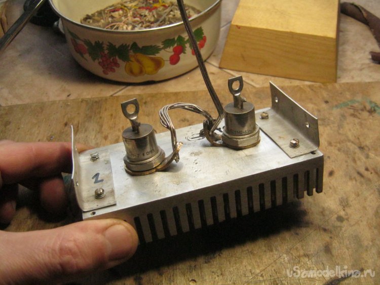 Установка тиристоров на радиаторы. В основном происходила штатно – разметка-сверление отверстия в пластине, с одной втыкаем тиристор, с другой накручиваем гайку. Тем более, что один из индивидуальных радиаторов и вовсе оказался «родным» (Фото 5). Встретились, обнялись, утерли скупую слезу - «сколько лет, сколько зим!», «а ты помнишь!»…