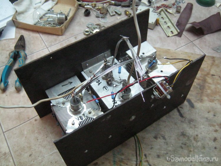 Фото 16. Основная силовая часть выпрямителя. Проверка работоспособности. В качестве включателя – временный миниатюрный тумблер.