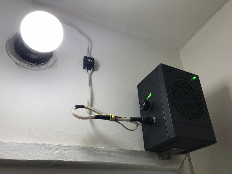 Питание (~230 Вольт) для АВР снимается с цоколя осветительной лампы, расположенной в ванной комнате, и вместе с двухпроводной линией радиосети заводится через единый разъём в корпусе АС, где и располагаются АВР с абонентским громкоговорителем.
