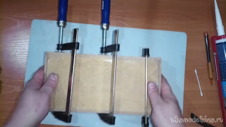 На некоторое время фиксируем струбцинами, чтобы хорошенько схватился клей.