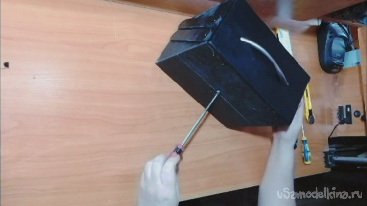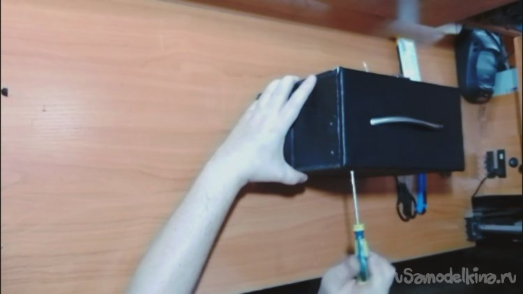 Теперь прикручиваем мебельную ручку к крышке нашего ящичка.