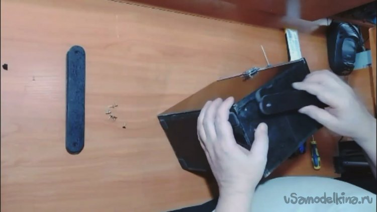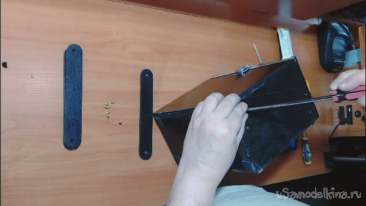 Применяем всё те же мелкие саморезы 5 мм, головки которых окрасил чёрным лаком.