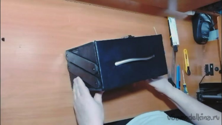 Шаг 7. Обклеивание верхней крышки ящика экокожей.