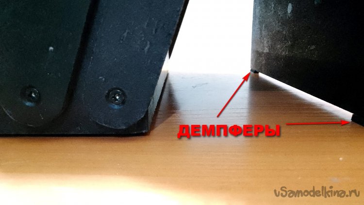 Затем наклеиваем на дно и на стойку верхнего отсека мягкие демпферы из вспененной резины.