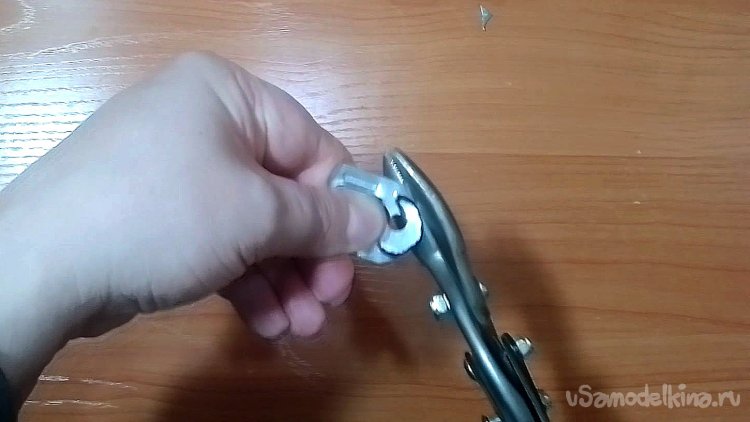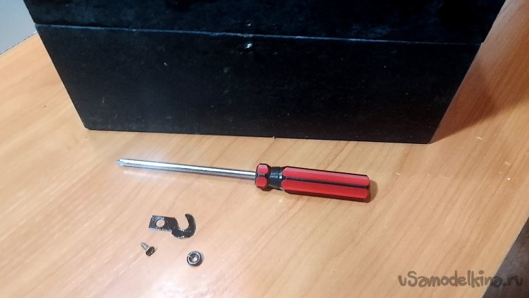 Сам крючок затягиваем саморезом 10 мм не до конца, что бы он свободно мог вращаться