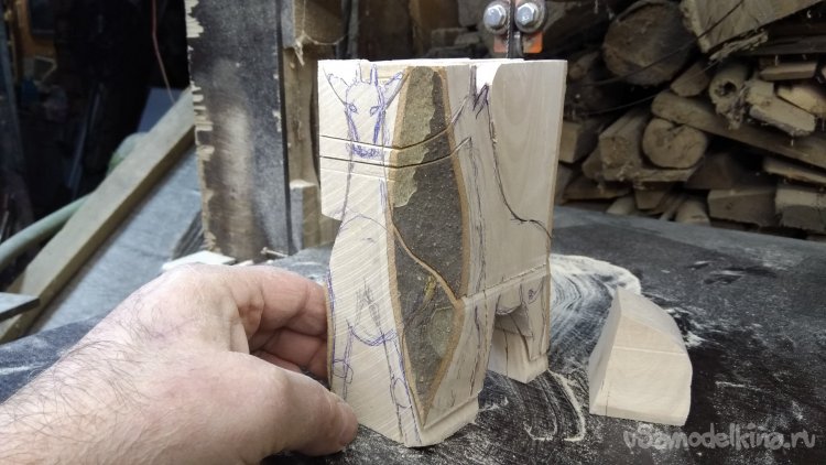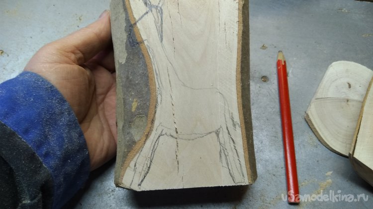 Очень тяжёлые были, сырые насквозь. Напилил и уложил в сауне. За пару месяцев они как кость стали твёрдые, пока пилил, зажимало полотно, внутренние напряжения очень велики. Но вот что получилось. Опять набросок с экрана, пару раз перерисовывал. Пропорции и анатомические особенности не соблюдены, я так вижу ))