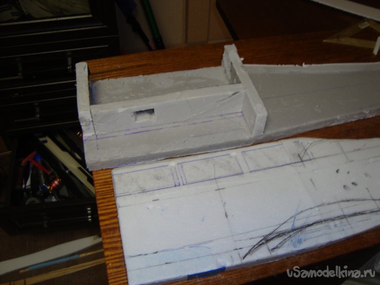 Для прочности конструкции использовал куски листового утеплителя «Пеноплекс», толщиной 20 мм., взятого от старой модели «Синева».